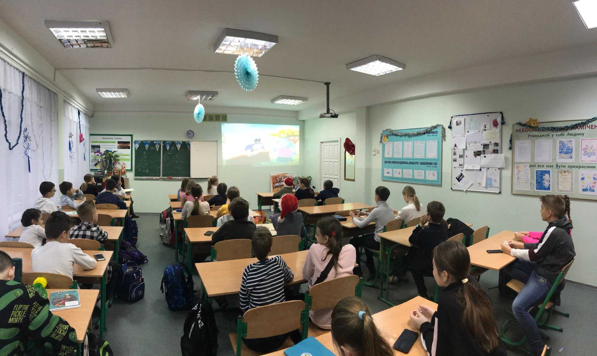 Учні, також, переглянули мультфільм про судовий процес під назвою «Слон проти Жирафи», під час перегляду якого кожен мав змогу випробувати себе у ролі судді та справедливо вирішити спір між звірами з мультфільму.