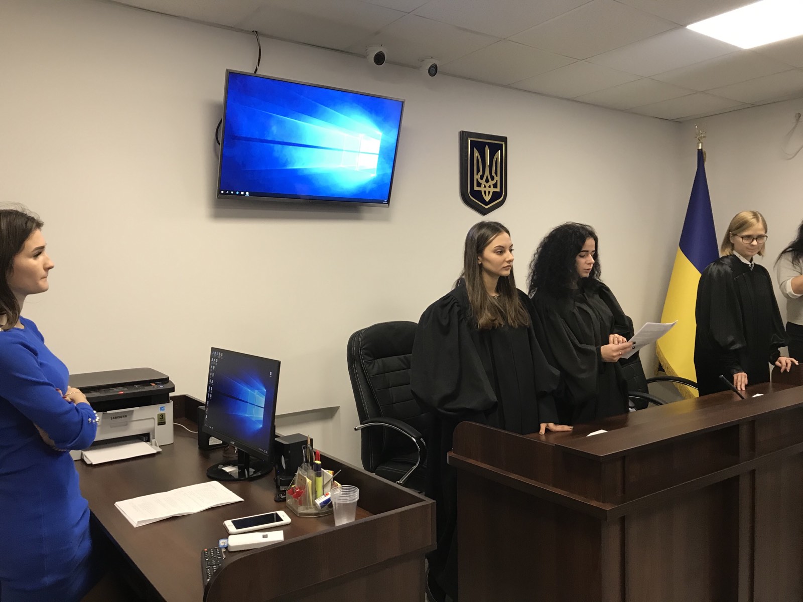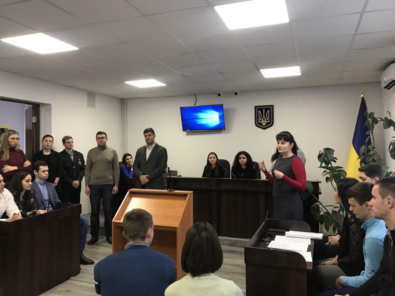 Одним з найцікавіших моментів зустрічі у суді як для дітей, так і студентів стало проведення модельного судового засідання, під час якого майбутні юристи мали змогу спробувати себе в ролі учасників судового процесу, щоб на практиці застосувати здобуті знання, уміння та навички і продемонструвати дітям як вирішується адміністративний спір.