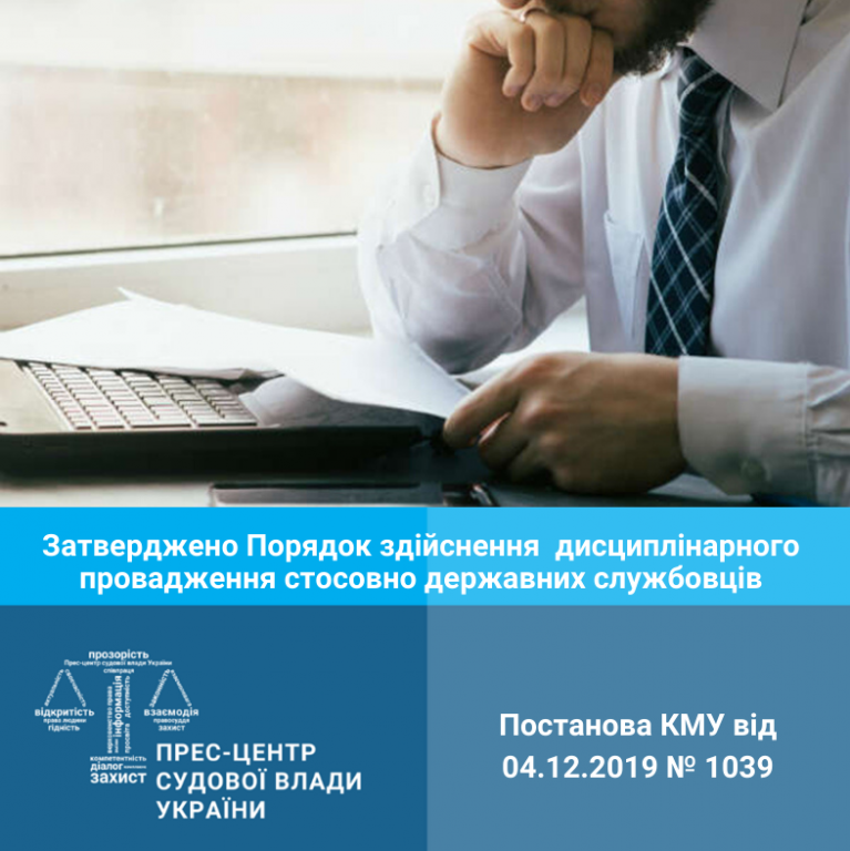 Постановою Кабінету Міністрів України від 4 грудня 2019 року № 1039 затвердив Порядок здійснення дисциплінарного провадження стосовно державного службовця.