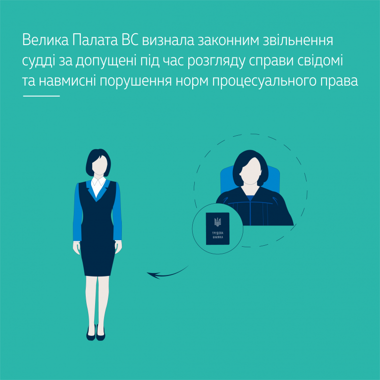 Велика Палата Верховного Суду погодилася з наведеними вище висновками дисциплінарного органу та вказала на те, що суддя максимально швидко і всупереч вимогам закону задовольнила позовні вимоги у згаданій справі про розірвання шлюбу, порушивши права та інтереси третьої особи, що унеможливило виконання судового рішення в іншій справі.
