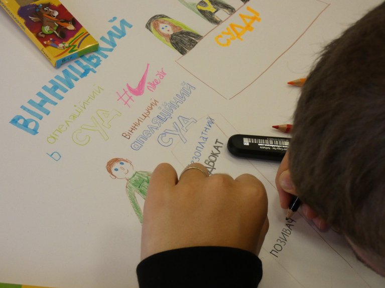 Сьогодні працівники апеляційного суду влаштували акцію «Суд – очима особливих дітей». Для цього закупили усе необхідне для малювання і запросили до творчості десятьох юних вінничан з обласного осередку Всеукраїнської громадської організації «Українська спілка осіб з інвалідністю – УСІ».