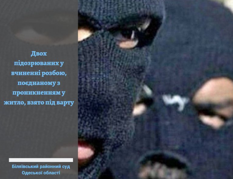 20 січня 2020 року слідчим суддею Біляївського районного суду Одеської області було обрано запобіжний захід двом підозрюваним, у вчиненні кримінального правопорушення, передбаченого частиною третьою статті 187 Кримінального кодексу України (розбій, поєднаний з проникненням у житло) у виді тримання під вартою з утриманням в Одеському слідчому ізоляторі на строк - 60 днів з дня затримання.