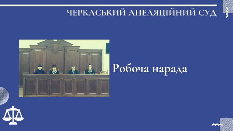 30 січня 2020 року в приміщенні Черкаського апеляційного суду відбулася спільна робоча нарада ініційована Територіальним управлінням Державної судової адміністрації у Черкаській області. Участь у заході взяли голова Черкаського апеляційного суду Юрій Сіренко та керівник апарату суду Тетяна Копитіна. На спільній нараді були присутні голови місцевих судів Черкаської області та керівники апаратів місцевих судів Черкаської області.