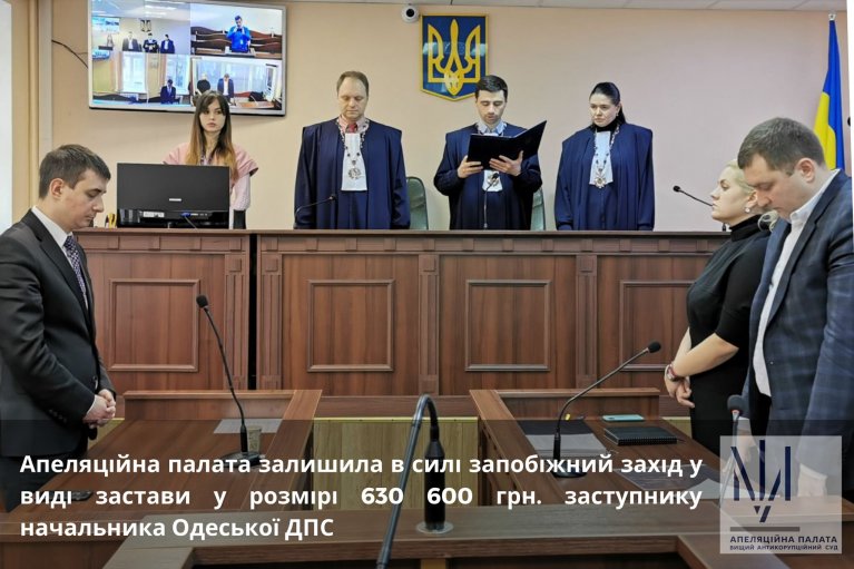 Сьогодні, 31 січня 2020 року, Апеляційна палата Вищого антикорупційного суду розглянула апеляційну скаргу захисника у справі заступника начальника Одеської ДПС на ухвалу слідчого судді Вищого антикорупційного суду від 23 січня 2020 року про обрання підозрюваному запобіжного заходу у виді застави.