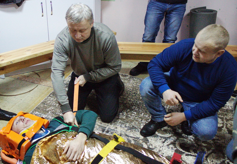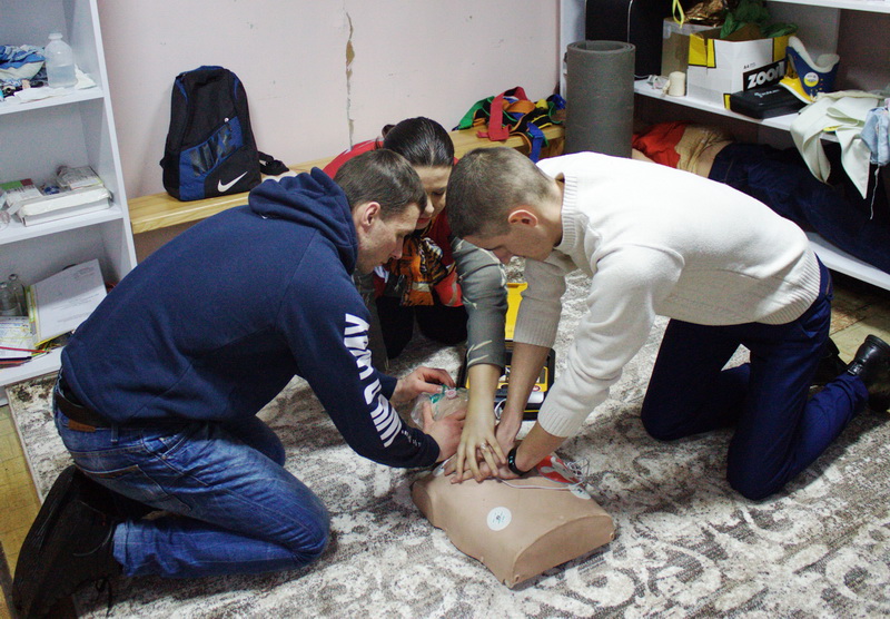 Навчання організовано групами по 8 осіб, що дозволяє ретельно відпрацювати практичні навички кожного співробітника з проведення серцево-легеневої реанімації з використанням автоматичного зовнішнього дефібрилятора, обробки ран, зупинки кровотечі, транспортування постраждалих.