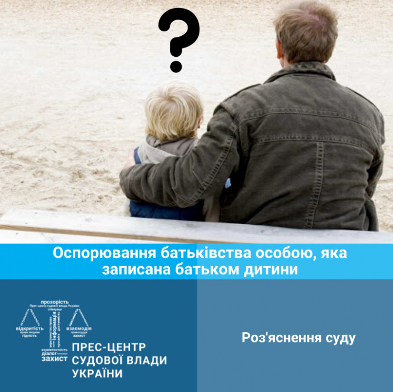 Згідно частин 1, 2 статті 136 Сімейного кодексу України особа, яка записана батьком дитини відповідно до статей 122, 124, 126 і 127 цього Кодексу, має право оспорити своє батьківство, пред’явивши позов про виключення запису про нього як батька з актового запису про народження дитини. У разі доведення відсутності кровного споріднення між особою, яка записана батьком, та дитиною суд постановляє рішення про виключення відомостей про особу як батька дитини з актового запису про її народження.