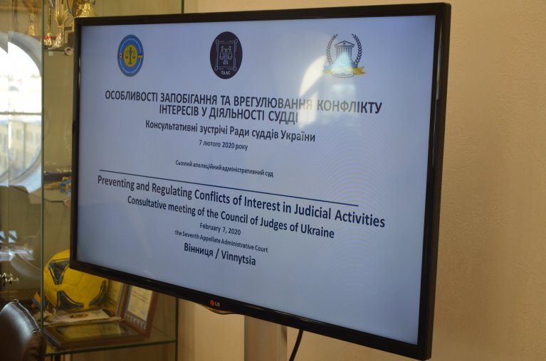 Сьогодні у Сьомому апеляційному адміністративному суді зустрілись служителі Феміди судів Вінницької області. Темою для обговорення є особливості запобігання та врегулювання конфлікту інтересів у суддівській діяльності.