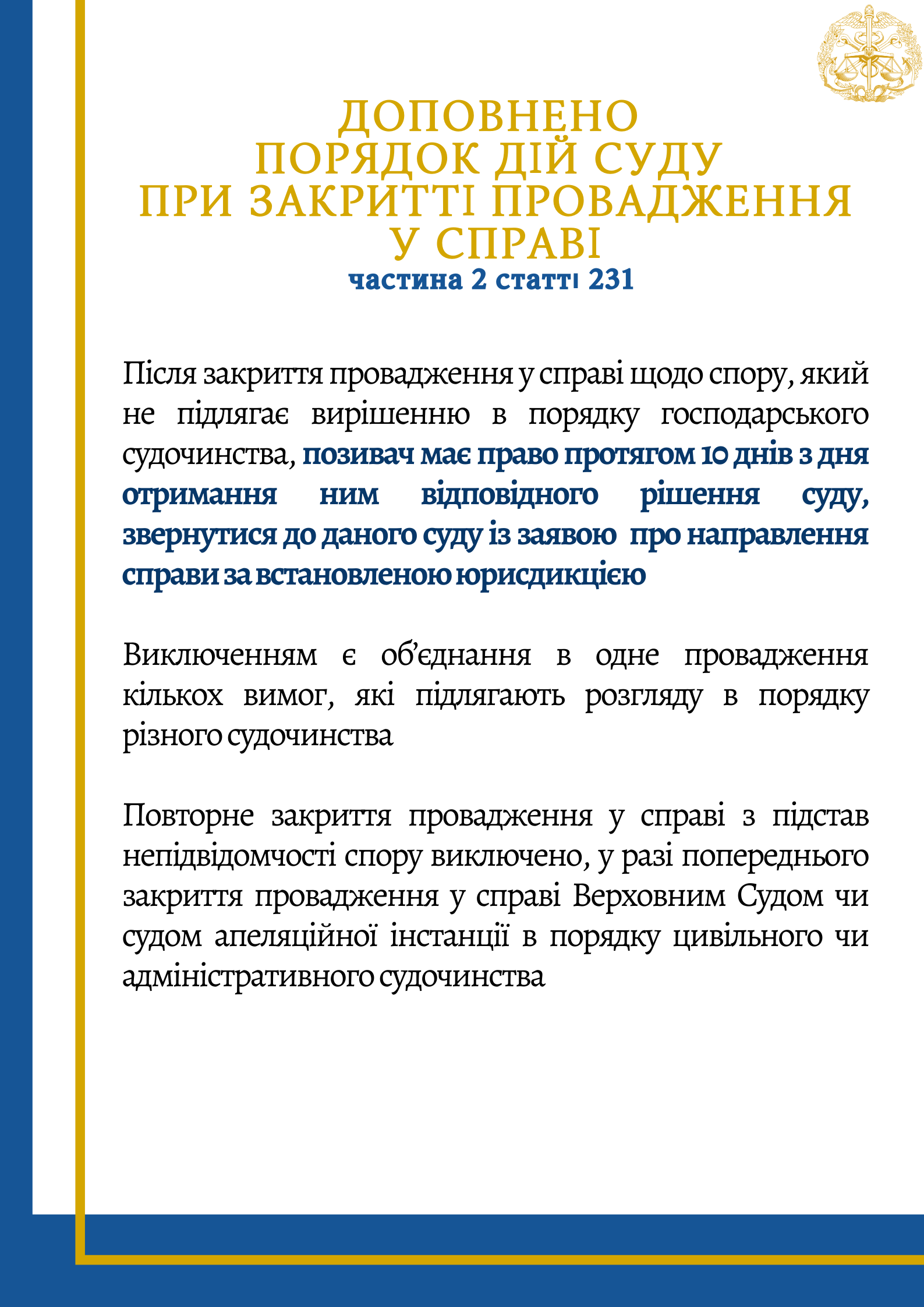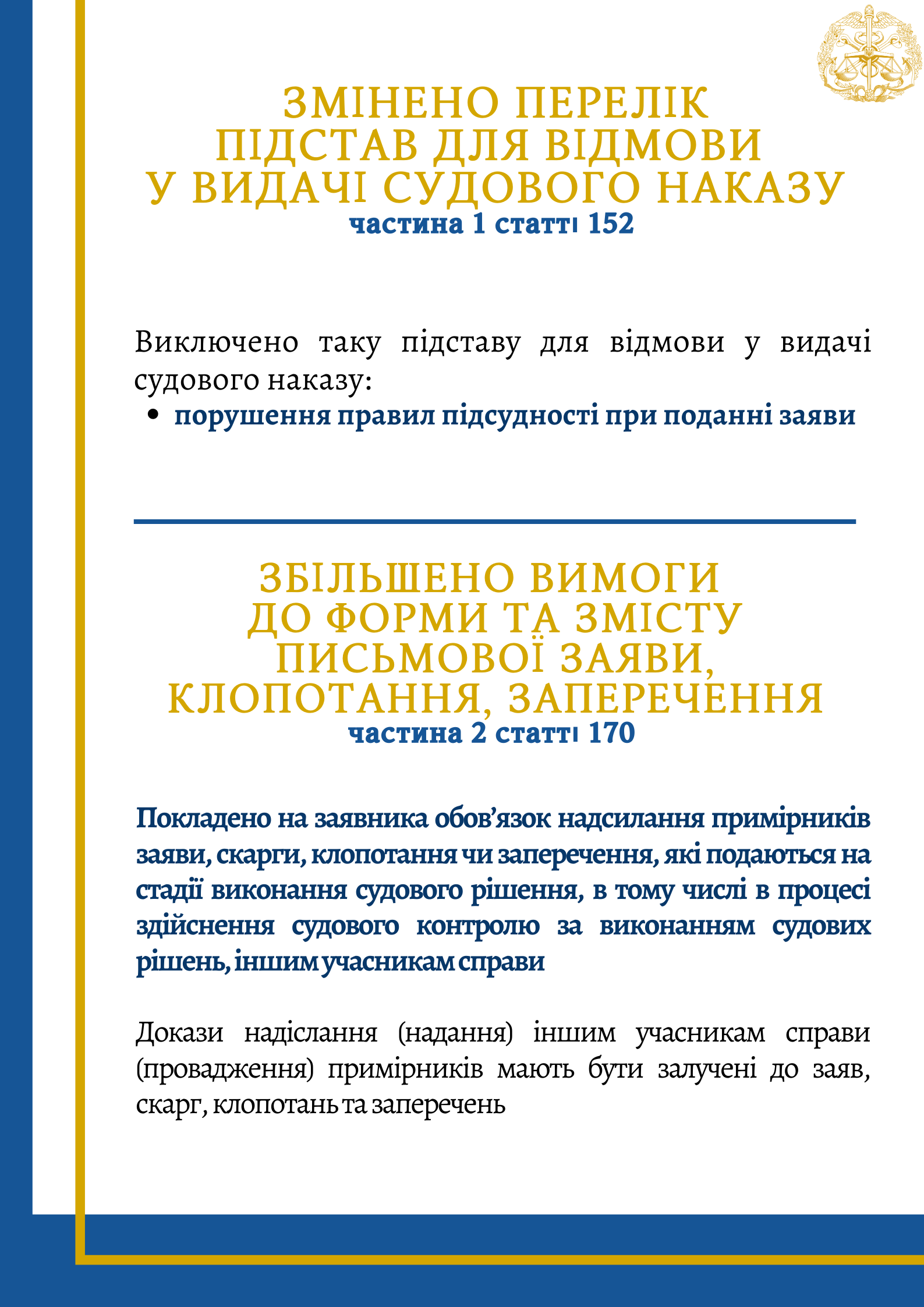 Асоціацією суддів господарських судів України підготовлено інфографіку щодо ключових змін внесених до ГПК України, яка допоможе зорієнтуватись у новаціях. Долучайтесь до перегляду.