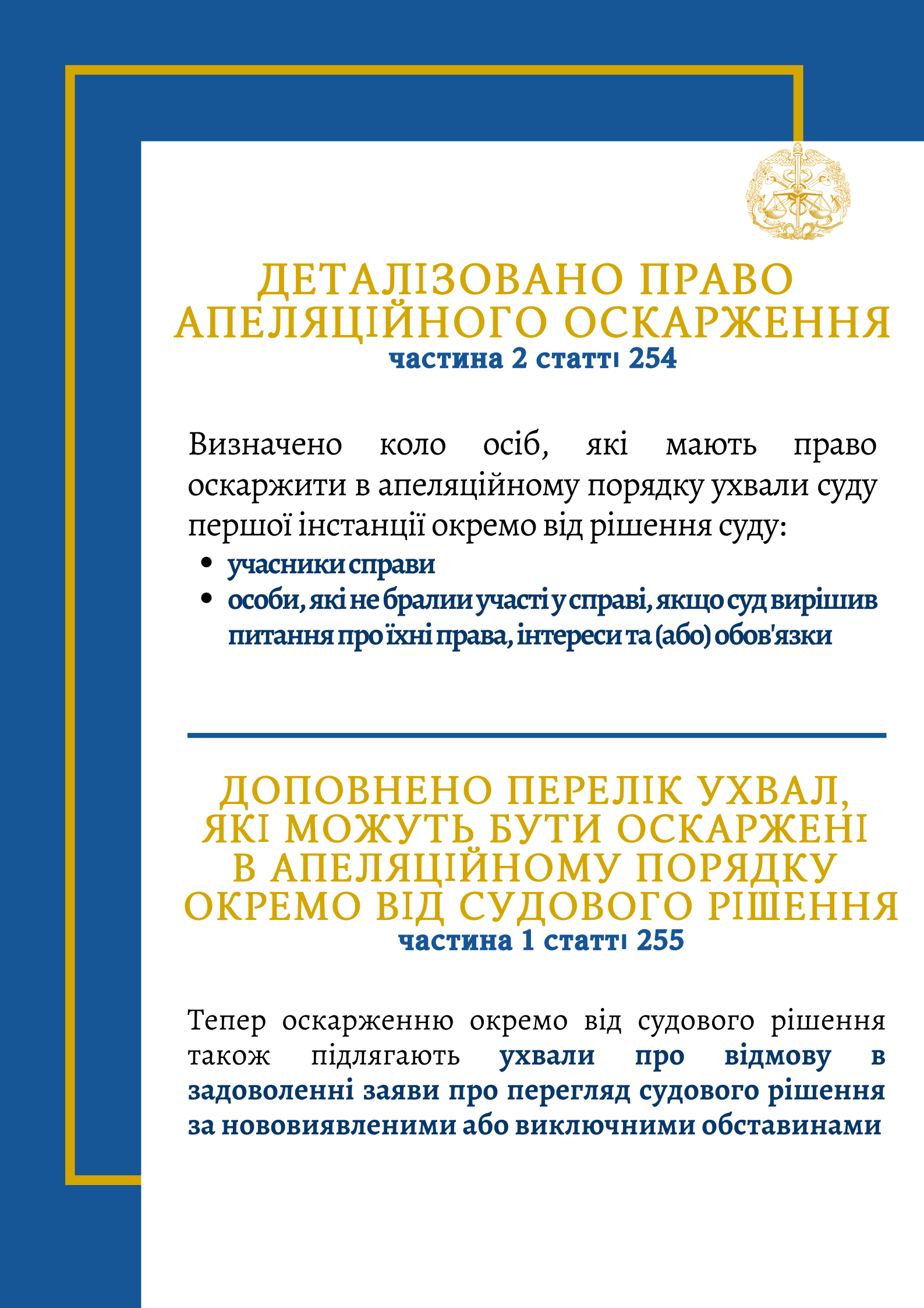 Внесено зміни до процесуальних кодексів! Вже опубліковано Закон України №460-ІХ від 15.01.2020, який передбачає вдосконалення порядку розгляду судових справ.