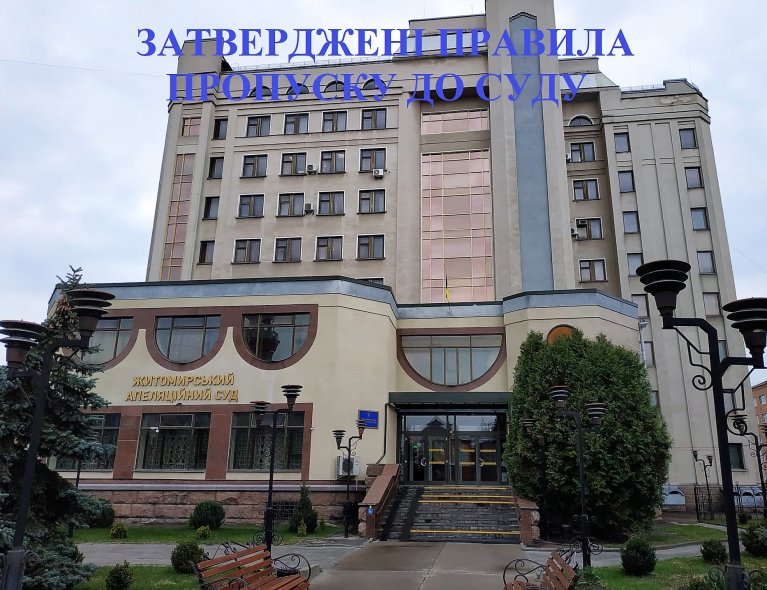 Наказом суду від 10 лютого 2020 року № 18-о/д затверджені Правила пропуску осіб до приміщення Житомирського апеляційного суду та на його територію транспортних засобів.