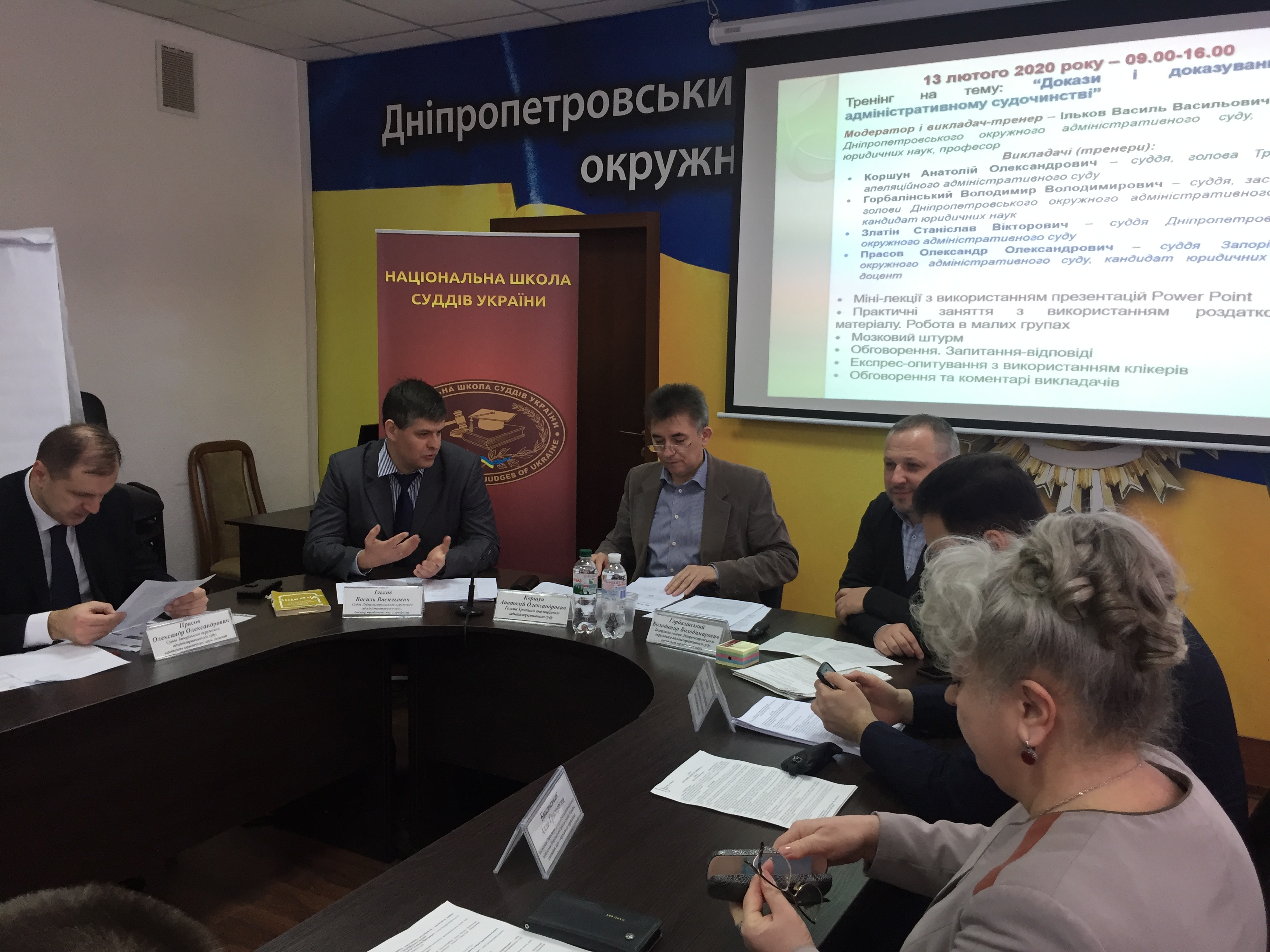 У Дніпропетровському окружному адміністративному суді з 10 по 14 лютого 2020 року помічники суддів і консультанти окружних та апеляційних адміністративних судів Дніпропетровської, Донецької та Запорізької областей, проходили професійну підготовку, організованою Національною школою суддів України.