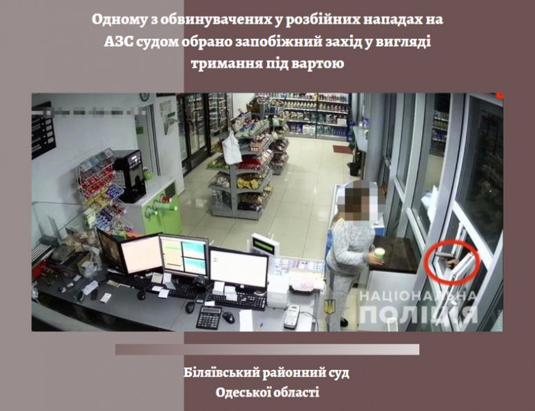 18 лютого 2020 року Біляївський районний суд Одеської області, розглянувши у підготовчому судовому засіданні клопотання прокурора, обрав одному з обвинувачених у розбійних нападах на АЗС, запобіжний захід у вигляді тримання під вартою до 17 квітня 2020 року включно, з його утриманням в ДУ ОСІ.