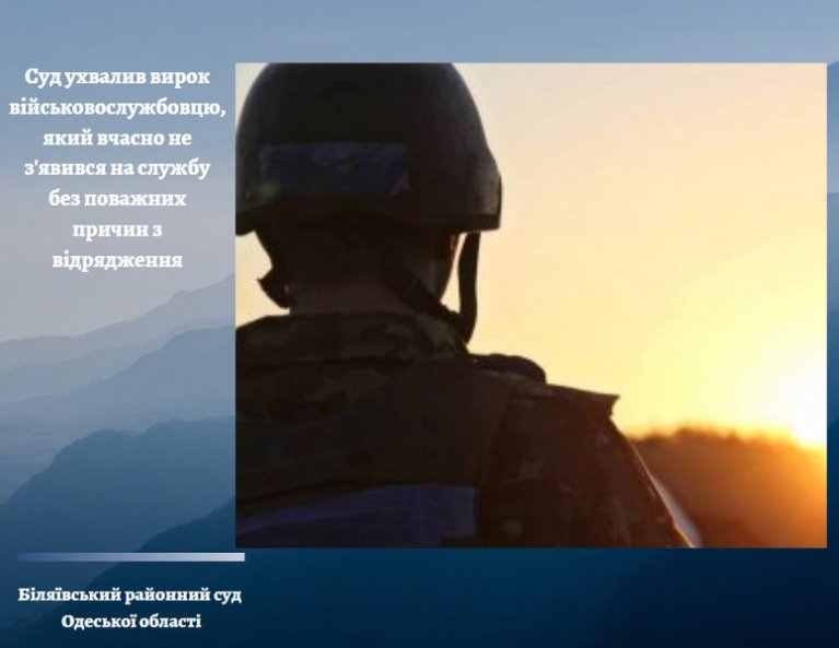 20 лютого 2020 року Біляївський районний суд Одеської області визнав громадянина Н. винним у вчиненні злочину, передбаченого частиною четвертою статті 407 Кримінального кодексу України (нез’явлення вчасно на службу без поважних причин, з відрядження, вчинене в умовах особливого періоду, крім воєнного стану, військовослужбовцем (крім строкової служби) і призначив йому покарання у виді позбавлення волі строком на 3 роки, звільнивши засудженого від відбування покарання з випробуванням строком на 1 рік та поклавши на нього обов’язки періодично з’являтися для реєстрації до уповноваженого органу з питань пробації, повідомляти уповноважений орган з питань пробації про зміну місця проживання, роботи або навчання.