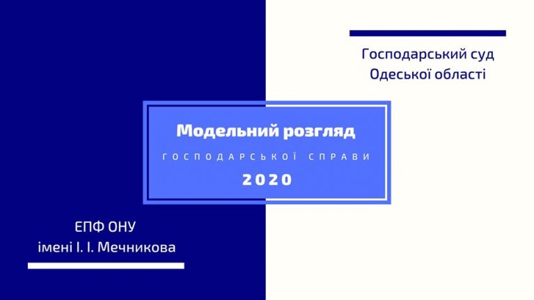 Сьогодні у Господарському суді Одеської області пройшло підготовче засідання по модельній справі у рамках проекту «Модельний розгляд господарської справи 2020». Захід було організовано спільно з Little Legal Think Tank 2m112 – освітнього проекту ЕПФ ОНУ імені І. І. Мечникова з метою отримання практичних навичок студентами-правниками, які стануть у нагоді як методичні рекомендації для молодих фахівців. Захід передбачав розгляд реальної господарської справи студентами економіко-правового факультету Одеського національного університету імені І.І. Мечникова (ЕПФ ОНУ) у підготовчому засіданні з подальшим призначенням справи до судового розгляду по суті на 5 березня 2020р. о 14:00. Студенти спробували себе в ролі суддів, секретаря судового засідання, прокурорів, представників позивачів та відповідачів. Учасники розділилися на 5 команд, а саме: команда суду, до якої входила колегія суддів та секретар судового засідання, дві команди позивачів, команда відповідачів та команда прокурорів.