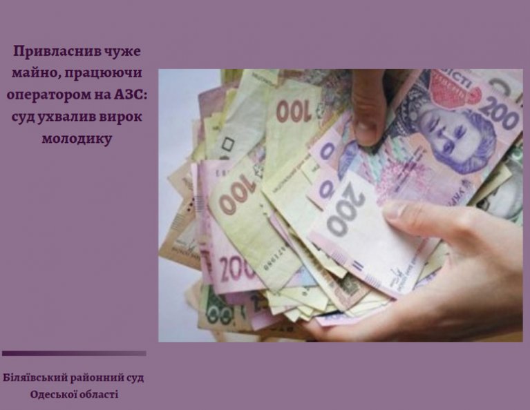 26 лютого 2020 року Біляївський районний суд Одеської області визнав винним громадянина Н. у вчиненні злочину, передбаченого частиною першою статті 191 Кримінального кодексу України (привласнення чужого майна ввіреного особі, яке перебувало в його віданні) і призначив йому покарання у виді штрафу на користь держави у розмірі п’ятдесяти неоподатковуваних мінімумів доходів громадян, що становить 850 грн.