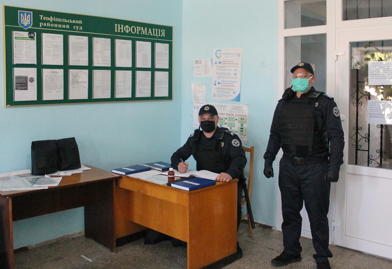 Перед початком несення служби зі співробітниками Служби провели інструктаж з охорони та забезпечення безпеки, підтримання громадського порядку в цих судових установах, а також дотримання заходів безпеки під час карантину.