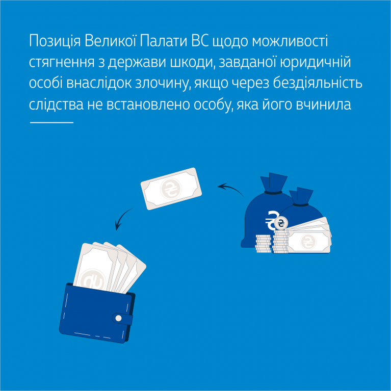 Велика Палата Верховного Суду вирішила виключну правову проблему щодо можливості комплексного застосування ч. 6 ст. 1176 і ст. 1177 ЦК України та стягнення з держави майнової шкоди, завданої кримінальним правопорушенням як майну фізичної особи, так і майну юридичної особи, якщо внаслідок бездіяльності органу досудового розслідування не встановлено особу, яка вчинила злочин.