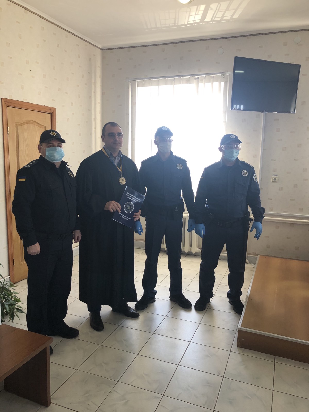 Виконуючий обов'язки голови суду Олег Желясков, керівник апарату суду Дмитро Мудрик та заступник начальника Територіального управління Служби судової охорони в Одеській області полковник Дмитро Батістік обговорили першочергові задачі під час несення служби та режим охорони.