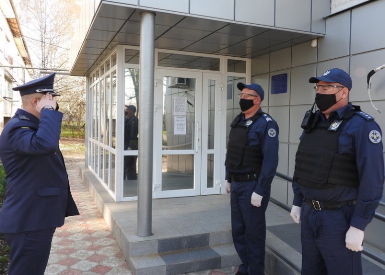 Усіх співробітників, задіяних до несення служби, забезпечено захисними окулярами, масками, рукавичками та дезінфікуючим розчином.