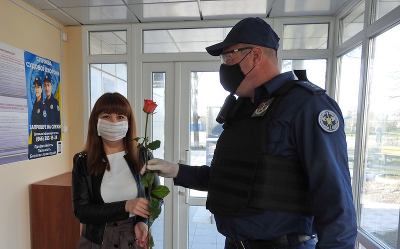 Продовжуючи традицію Служби судової охорони, співробітники Служби подарували квіти усім працівницям суду.