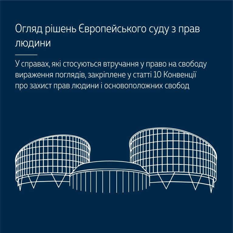 Водночас не менш важливим є формування комплексних уявлень щодо правових позицій ЄСПЛ, які він висловлює в окремих категоріях справ. З цією метою Верховний Суд готує тематичні огляди практики ЄСПЛ, у яких здійснює систематизацію рішень у таких справах. Цього разу – у тих, що розглянуті у зв’язку з порушенням статті 10 Конвенції про захист прав людини і основоположних свобод.