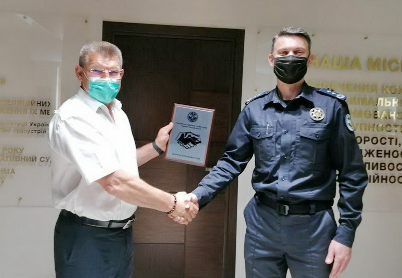 Начальник Територіального управління Служби судової охорони у Одеській області полковник Служби судової охорони Петро Талпа вручив керівництву суду символічний знак Служби на підтвердження того, що відтепер судді, працівники апарату суду та усі учасники судового процесу перебуватимуть у повній безпеці.