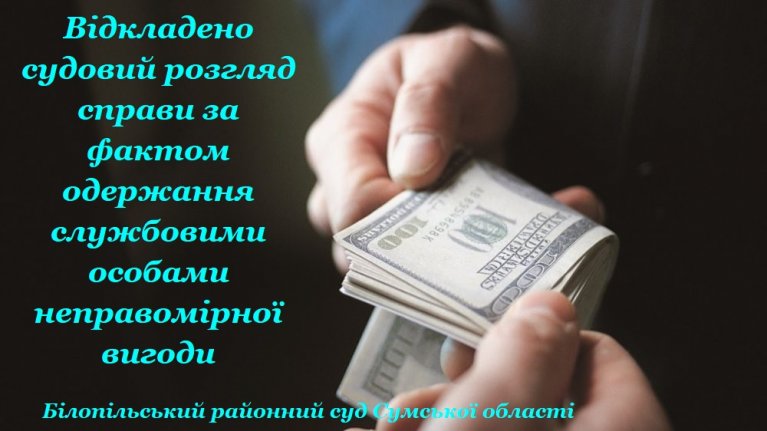 Голова Куянівської сільської ради Білопільського району Сумської області П. обвинувачується за ч. 4 ст. 368 КК України – одержання неправомірної вигоди службовою особою, кваліфікуючими ознаками якого є: вчинення злочину службовою особою, яка займає відповідальне становище, попередня змова групою осіб, вимагання неправомірної вигоди.
