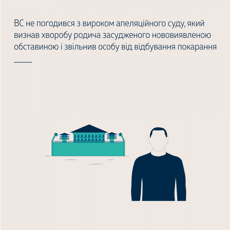 У касаційній скарзі прокурор вказав, зокрема, на те, що апеляційний суд не мотивував, у звʼязку з чим вважає хворобливий стан бабусі засудженого нововиявленою обставиною, яка передбачена ч. 2 ст. 459 КПК України, оскільки вказана обставина не перебуває в будь-якому звʼязку з предметом доказування у цьому кримінальному провадженні.