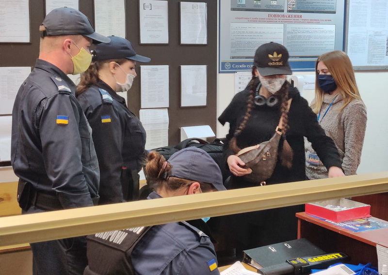 Зокрема, посилено пропускний режим, з метою недопущення пронесення заборонених предметів до будівлі правосуддя здійснюється поверхнева перевірка всіх без винятку осіб.