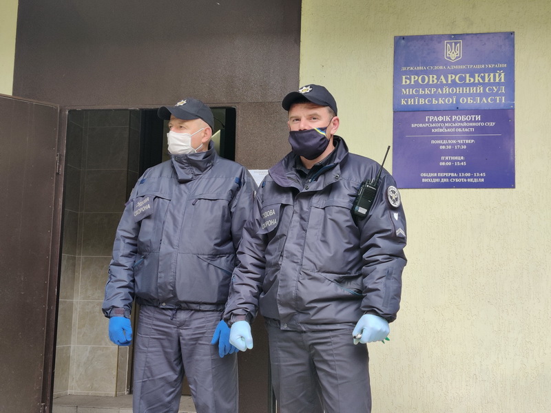Співробітники Служби судової охорони продовжують забезпечувати охорону та безпеку Броварського міськрайонного суду Київської області, де тривають судові засідання з обрання запобіжних заходів затриманим особам.