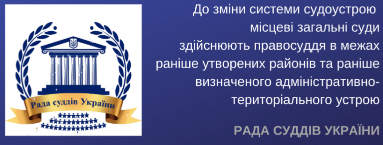 Це дає підстави вважати, що до зміни системи судоустрою та приведення її у відповідність до нового адміністративно-територіального устрою шляхом утворення, реорганізації чи ліквідації судів, місцеві загальні суди продовжують здійснювати розгляд справ в межах раніше утворених районів та раніше визначеного адміністративно-територіального устрою.