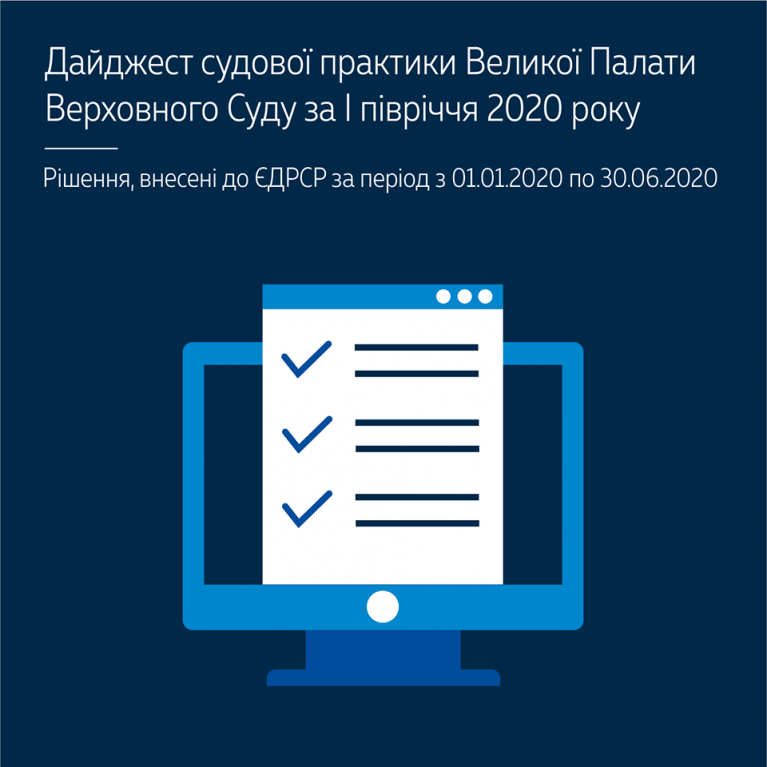 У дайджесті зібрано всі ключові правові позиції Великої Палати Верховного Суду за І півріччя 2020 рік, систематизовані за видом судової юрисдикції та підставами розгляду Великою Палатою, а також окремі правові позиції, зокрема, щодо вимог, які не підлягають розгляду в судовому порядку.