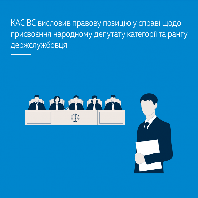 Верховний Суд у складі колегії суддів Касаційного адміністративного суду розглянув позов народного депутата України VIII скликання (період з 27 листопада 2014 року по 29 серпня 2019 року), у якому позивач просив визнати неправомірною бездіяльність Верховної Ради України щодо присвоєння йому першої категорії та першого рангу державного службовця, а також зобов’язати відповідача вчинити ці дії.